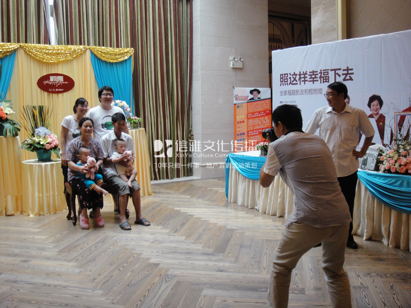 為了給業(yè)主們營(yíng)造溫馨唯美的拍攝環(huán)境,我們的工作人員精心組織,特別邀請(qǐng)市內(nèi)知名的攝影機(jī)構(gòu)參與拍攝,專業(yè)的攝影師和化妝師,還有可供選擇的換穿的拍攝服裝。在扣動(dòng)相機(jī)“咔咔”清脆聲下,多名業(yè)主及家人一幕幕溫馨的瞬間被記錄下來(lái)。這些照片現(xiàn)場(chǎng)即拍即印,將每個(gè)家庭的照片作成精美的相框,送給業(yè)主留作紀(jì)念。信雅文化在此次的周末暖場(chǎng)活動(dòng)現(xiàn)場(chǎng)的精美布置與精心策劃受到了樓盤開(kāi)發(fā)商高度評(píng)價(jià),通過(guò)活動(dòng)的圓滿舉辦也給來(lái)參加活動(dòng)的業(yè)主及客戶還來(lái)不一樣溫情與感動(dòng)。